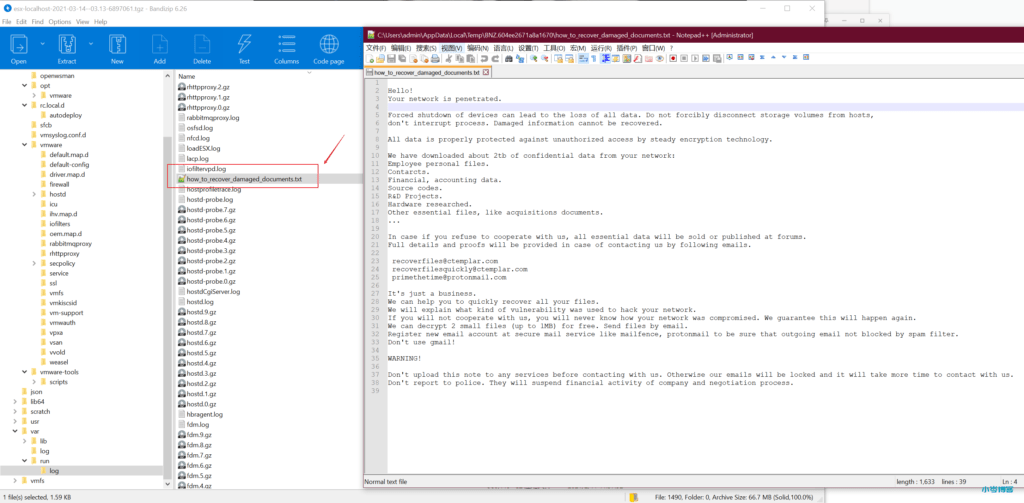 VMware vm-support日志收集包中,竟然也有勒索软件生成的说明。图片引用自https://blog.csdn.net/z136370204/article/details/114924387